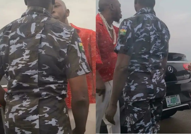The video shows Seun confronting the policeman after which he pushed and slapped the officer. It also shows Seun’s wife coming down from his vehicle to calm him down, while he was confronting the officer.